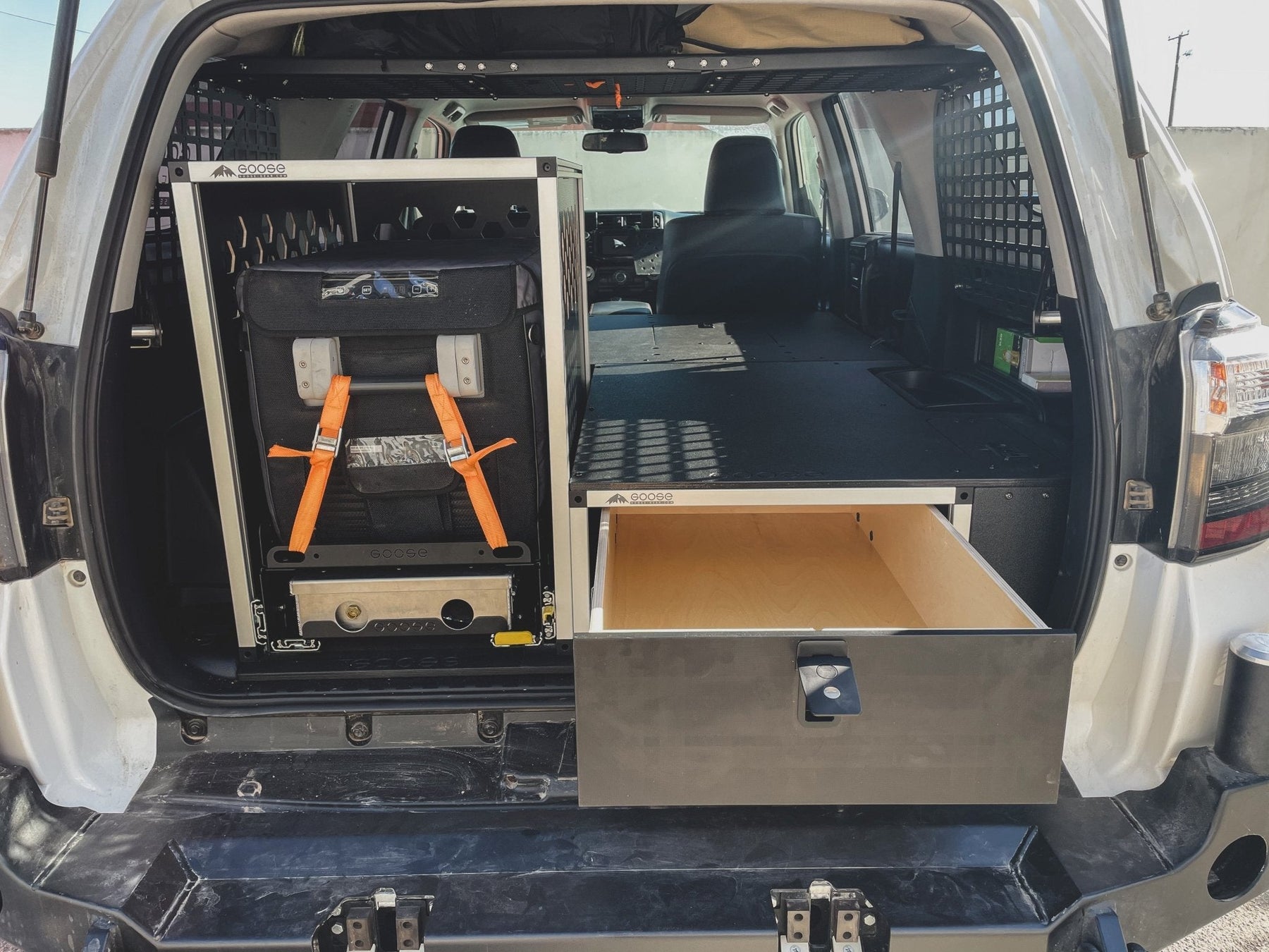 This package is very similar to the system that we ran in our very own 4th Gen 4Runner at the beginning. By utilizing a longer 36" drawer we gain storage that is easily accessible and leaves plenty of room on top for your personal gear. Things like sleeping bags, pillows and food.