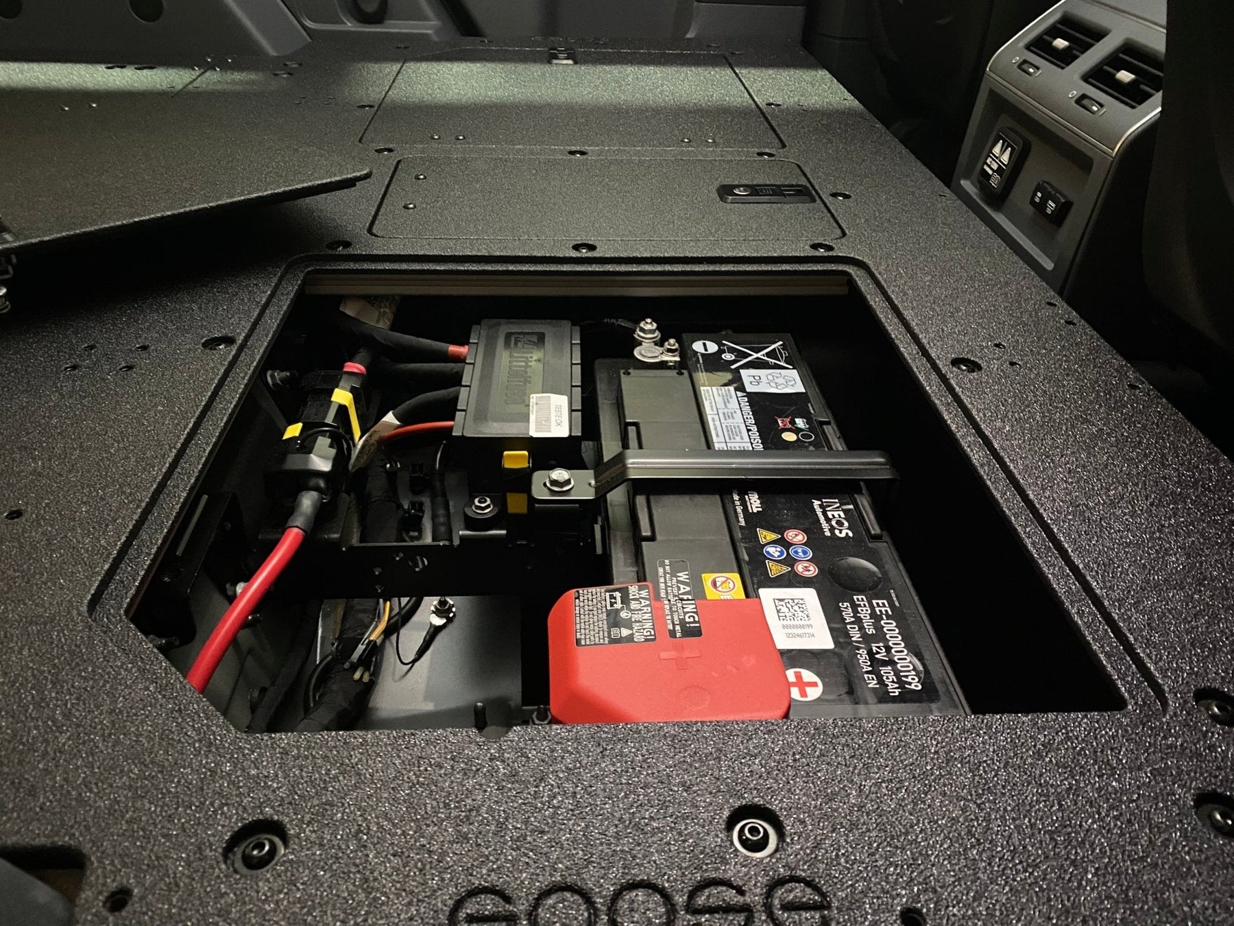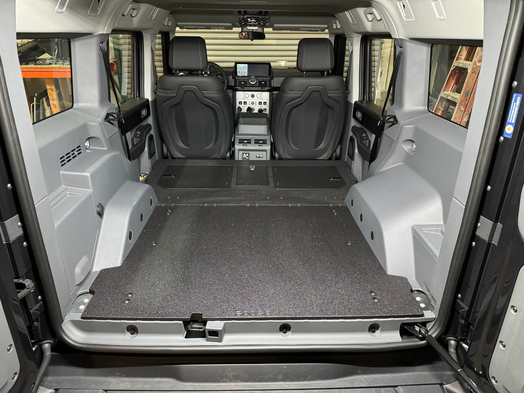 Maximize the functionality of your Ineos Grenadier with the Second Row Seat Delete Plate System™, engineered to provide ample storage space and compatibility with Goose Gear Modules or your own custom storage system and accessories. This 100% second-row delete requires the removal of the seat, seat frame, and the surrounding plastic trim panels that house electrical components under the factory seat.