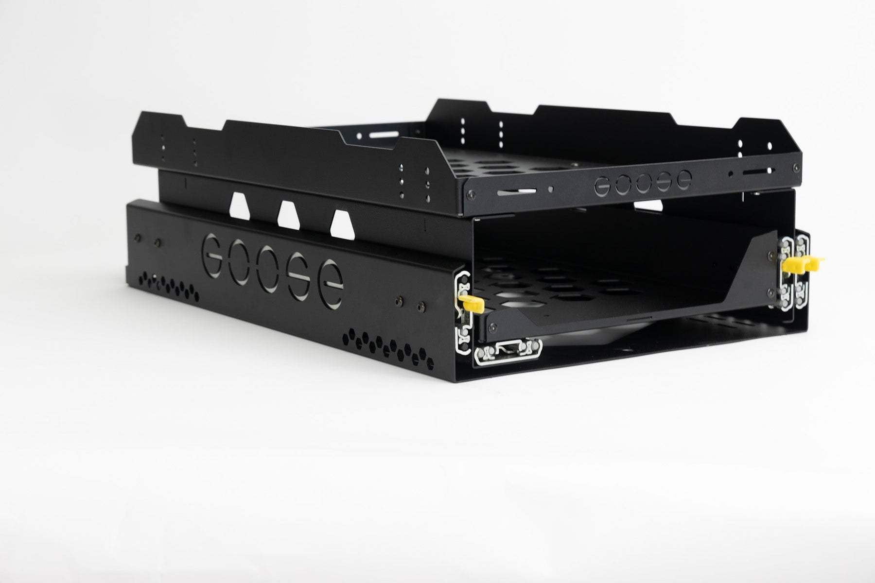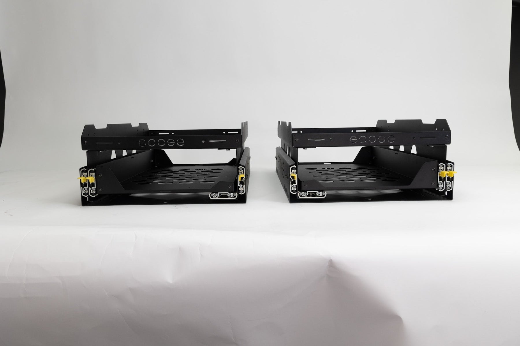 Solo Fridge Slides come with hardware to secure them to nearly any Goose Gear Rear Plate. Some earlier models may require drilling, but we have done our best to accommodate nearly all of the existing and legacy plates into the design for ease of installation.